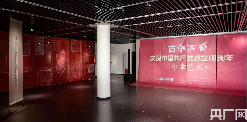 展覽位于上海四行倉庫抗戰(zhàn)紀念館3樓臨展廳,F(xiàn)場共分為三個部分,分別是:紅色歷程,由百枚印章和邊拓組成的百幅懸掛圖片,宛如絢麗的紅色海洋,表現(xiàn)了中國共產黨“百年征程波瀾壯闊”;紅色印記,由手工精裱長卷、雅體刺繡“中國共產黨萬歲”和“不忘初心”、雅體瓷畫“江山萬年青”等組成,表達了藝術家們“百年初心歷久彌堅”的創(chuàng)作理念;紅色基因,展出百方印章以及由印章引申而出的紅色文創(chuàng),如印譜、打卡明信片、帆布包等,讓國潮把紅色文化帶給更多的人。