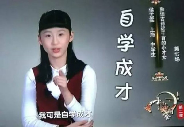 侯尤雯2歲多開始自學《唐詩三百首》,小學時開始自學《宋詞三百首》。六年級時就拿過一次全市古詩文大賽一等獎。