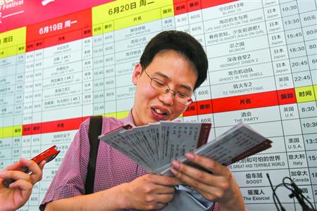 影城的工作人員也在現(xiàn)場隨時為影迷發(fā)放電影節(jié)排片表和購票單,F(xiàn)場前來買票的影迷表示,可以利用排隊時間先選擇好影片,并在購票單上填好影片編號和購票數(shù)量,這樣就能在最快時間內(nèi)買到心儀的電影票。