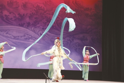 下腰、鷂子翻身、耍槍花、耍長(zhǎng)綢、翻跟頭……昨晚的 《雷峰塔》演至 《水斗》一折,白素貞、小青與眾水族、天將們激斗正酣,頓時(shí)點(diǎn)燃東北觀眾的熱情,相比于前一晚看 《牡丹亭》的 “坐得住” “靜得下來(lái)”,昨晚的現(xiàn)場(chǎng)為激烈的武戲場(chǎng)面沸騰了。
