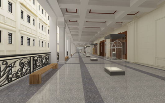 為了使歷史保護(hù)建筑的外立面不受損害,在這次改造中,空調(diào)外機(jī)全部取消,原來空調(diào)管道都暴露在陽臺(tái)上,此番寧愿損失寶貴的內(nèi)部幾百平方米的空間展陳用以鋪設(shè)空調(diào)管道,也讓一二樓的重要保護(hù)區(qū)域的建筑細(xì)節(jié)得到了充分展現(xiàn)。