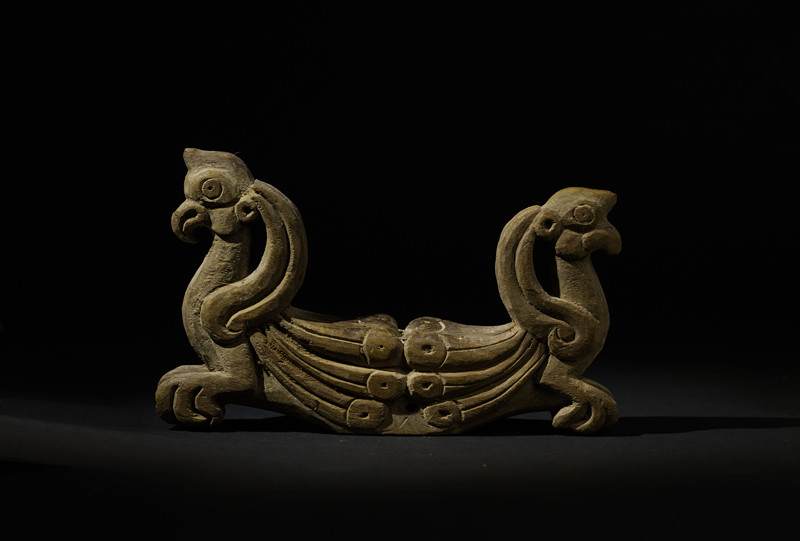 憑借強(qiáng)大的國(guó)力,貴霜王朝不僅對(duì)周邊地區(qū)產(chǎn)生一定的文化影響,而且在經(jīng)濟(jì)上產(chǎn)生了更為深入的影響。中亞地區(qū)最具特色的本土藝術(shù)就是建筑裝飾。當(dāng)貴霜人成為這一地域的統(tǒng)治者之后,他們?nèi)诤掀渌囆g(shù)形式并盡情發(fā)揮,將建筑裝飾藝術(shù)也推向了一個(gè)新的階段。在展品“木雕人獸飾板”中刻畫的有翼神獸是虛構(gòu)的神話動(dòng)物,大象也不可能出現(xiàn)于古代和田地區(qū),這兩種動(dòng)物形象的同時(shí)出現(xiàn)說(shuō)明了古代和田人與外部世界的溝通交流。