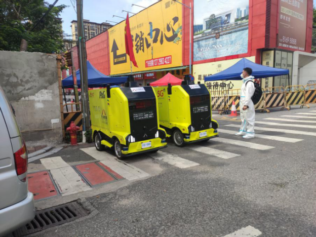 行深智能運營工程師們也是眾多奔赴抗疫一線的志愿者中的一員,他們帶著5輛無人配送車一直服務(wù)在抗疫一線。端午這天,無人車把政府和社會為社區(qū)、一線工作人員和志愿者們準備的粽子送到他們手中,無人車配送的不僅是一份生活物資,更是在傳遞一份溫暖與關(guān)懷。