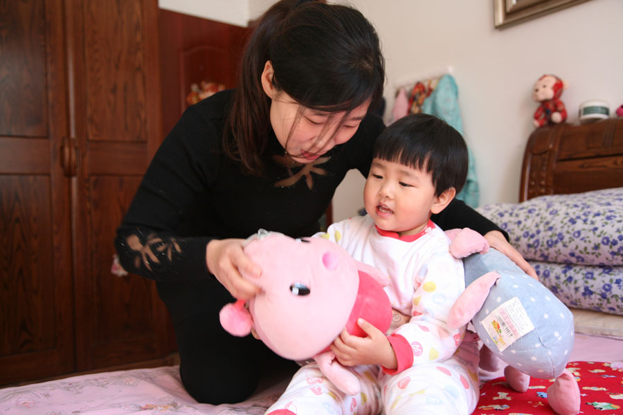 回到家的賈媛媛照顧2歲的女兒 下班后在家里整理房間的日常。