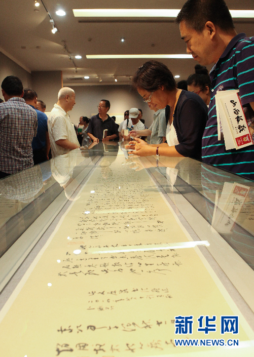 近日,“趙國柱書法匯報展”在太原美術(shù)館拉開帷幕。此次展覽共展出趙國柱先生創(chuàng)作的書法作品60余件,展期將持續(xù)到8月13日。從2015年10月起,趙國柱先生先后在北京榮寶齋美術(shù)館、上海朵云軒以及杭州西泠印社美術(shù)館舉辦了個人書法展。新華網(wǎng)發(fā) (馬平 攝)