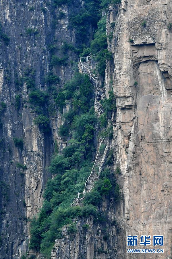 山西省長治市平順縣神龍灣村懸崖峭壁上的“哈嘍梯”(6月13日攝)。新華社記者 曹陽 攝 -