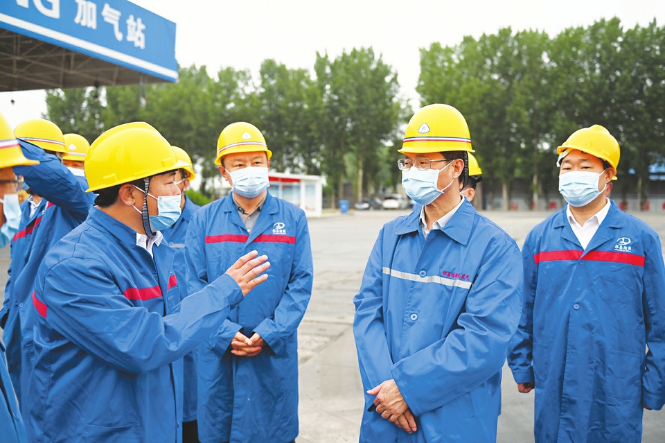 (6月14日,省委副書記、代省長(zhǎng)藍(lán)佛安來(lái)到祁縣潔源天然氣有限公司,實(shí)地查看燃?xì)鈨?chǔ)存罐體安全防護(hù),詢問(wèn)節(jié)假日值守、燃?xì)鈨?chǔ)存運(yùn)輸、管網(wǎng)更新改造等情況。 本報(bào)記者阮洋攝)