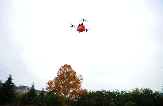 10日上午,一架無人機(jī)帶著快遞箱,從京東位于西安長(zhǎng)安區(qū)樊川站的起降點(diǎn)升空,不到十分鐘,就飛進(jìn)了長(zhǎng)安區(qū)杜曲街道師家村村委會(huì)的小院里。離地約30厘米時(shí),無人機(jī)將貨物拋落,隨即拉高,原路返航,整套動(dòng)作由電腦設(shè)定,無人機(jī)自主完成。目前,這種無人機(jī)配送已在陜西西安、江蘇宿遷等市實(shí)現(xiàn)常態(tài)運(yùn)行,累計(jì)飛行時(shí)間超過17萬小時(shí)。