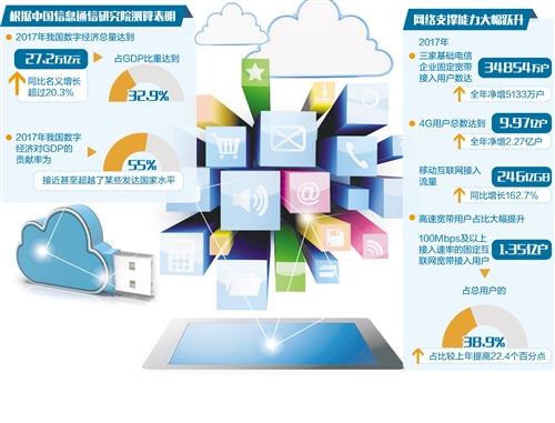 “數(shù)字經(jīng)濟已成為近年來帶動經(jīng)濟增長的核心動力,2017年我國數(shù)字經(jīng)濟對GDP的貢獻率為55%,接近甚至超越了某些發(fā)達國家水平。”中國信息通信研究院政策與經(jīng)濟研究所所長魯春叢表示,根據(jù)中國信息通信研究院測算,2017年我國數(shù)字經(jīng)濟總量達到27.2萬億元,同比名義增長20.3%,占GDP比重達到32.9%。隨著信息化發(fā)展環(huán)境的全面推進,我國數(shù)字經(jīng)濟發(fā)展“水漲船高”。