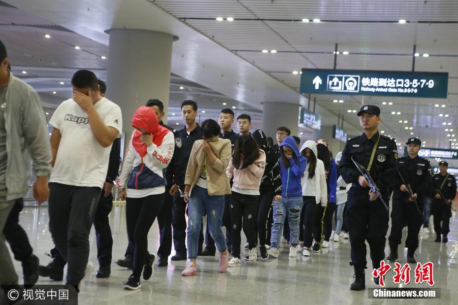 9月4日,涉嫌網(wǎng)絡(luò)詐騙嫌疑人被押回西安。利用微信和支付寶,詐騙西安市民40萬元,公安航天分局歷時兩個月,跨省抓獲25名嫌疑人,昨晚從黑龍江押解回西安。西安市公安局航天分局辦案民警介紹,今年上半年,該局接到一市民報警稱,其被人利用微信、支付寶等網(wǎng)絡(luò)手段,騙走40余萬元。該局迅速成立專案組,組織偵破。張杰攝 圖片來源:視覺中國 -