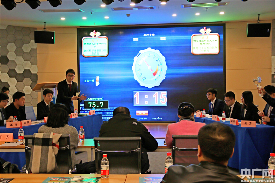 決賽環(huán)節(jié),陜西師范大學(xué)辯論隊(duì)與西安建筑科技大學(xué)校辯論隊(duì)就“新時(shí)代下秦腔應(yīng)該創(chuàng)新改良還是堅(jiān)守傳統(tǒng)”展開激烈辯論。最終,陜西師范大學(xué)辯論隊(duì)奪得本屆辯論賽的冠軍,西安建筑科技大學(xué)校辯論隊(duì)獲得亞軍,雙方分獲1000元、800元的現(xiàn)金獎(jiǎng)勵(lì)和榮譽(yù)證書。