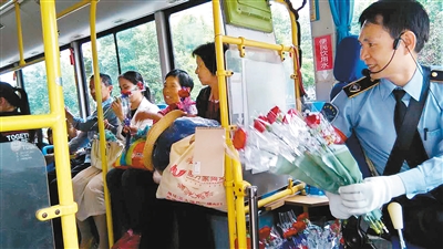 西安晚報(bào)訊 (記者宋潔 見習(xí)記者康喬娜) 昨日是母親節(jié),不少乘客剛踏上600路公交車,就聽到車廂里傳來“世上只有媽媽好”的親切歌聲,還意外地收到了駕駛員吳本國(guó)送出的康乃馨。
