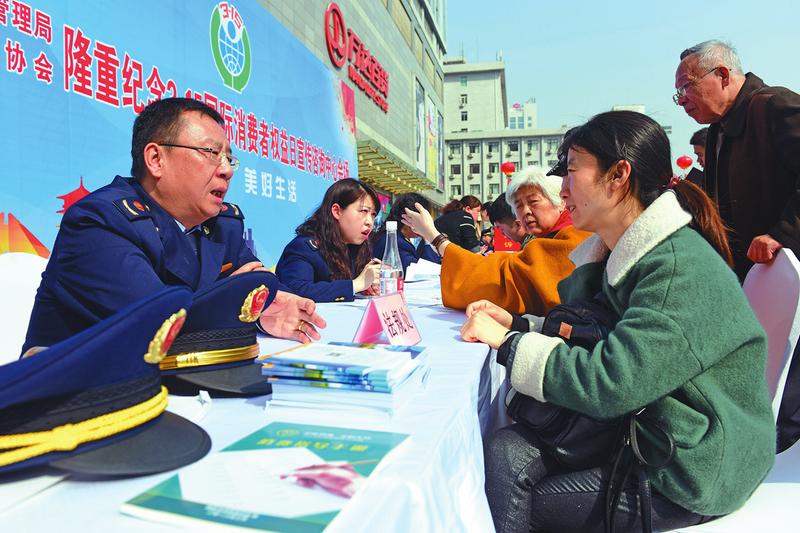 3月15日,在西安市碑林區(qū)李家村萬(wàn)達(dá)廣場(chǎng),西安市工商局聯(lián)合西安市消費(fèi)者協(xié)會(huì)舉辦“3·15”國(guó)際消費(fèi)者權(quán)益日系列宣傳活動(dòng),向廣大市民宣傳消費(fèi)維權(quán)相關(guān)知識(shí)。 本報(bào)記者 袁景智攝