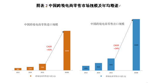 圖表2中國(guó)跨境電商零售市場(chǎng)規(guī)模及年均增速