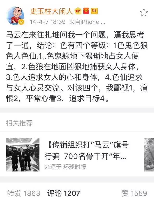 這次兩人在人性方面很談得來,馬云發(fā)現(xiàn),史玉柱對人性特別是中國的人性有著極其深刻地洞察,而史玉柱同樣也對馬云的管理和深刻思想非常認(rèn)可。在史玉柱的微博中,我們也看到,他經(jīng)常提及馬云給他發(fā)的提問,而很多都是涉及人性層面的探討。