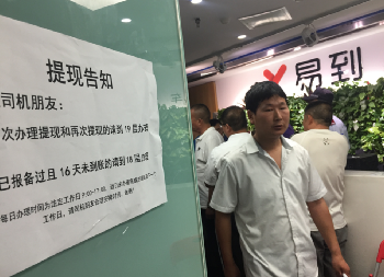 今年4月易到出現(xiàn)提現(xiàn)困難的情況后,易到承諾,愿意選擇線(xiàn)下提現(xiàn)的司機(jī)在公司登記后,16個(gè)自然日后賬戶(hù)金額將直接打到司機(jī)的銀行卡上,但很多司機(jī)到期后并未收到款項(xiàng),所以只能選擇到公司要賬。