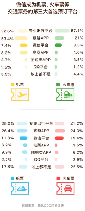 微信平臺已成為交通票務(wù)的第三大首選平臺