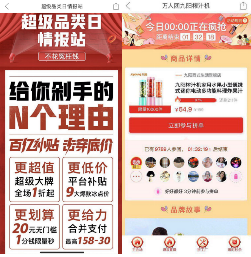 5月,拼多多推出迄今為止促銷力度最大的“美好生活萬人團”活動。期間,拼多多將聯(lián)合品牌方投入百億補貼,推出10000款擊穿行業(yè)價格底線的標品,打造一萬個“萬人團”,實現(xiàn)一億人“開拼”、一億筆品牌訂單的活動目標。