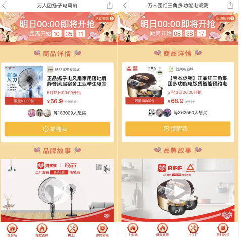對此,有業(yè)內人士指出:“在新增用戶大量涌入之際,(拼多多)推出‘萬人團’活動,意在進一步提升用戶的留存和復購率。從行業(yè)角度看來,5月是電器類等產(chǎn)品的銷售旺季,活動也契合了市場需求!