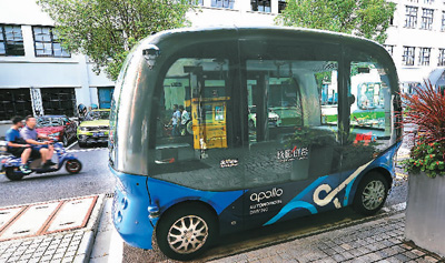 8月19日,由百度參與研發(fā)的全球首款L4級(jí)別無(wú)人駕駛巴士“阿波龍”通勤車亮相長(zhǎng)陽(yáng)創(chuàng)谷。