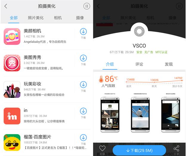 而后期處理類app在百度手機助手中更是玲瑯滿目,只有你想不到?jīng)]有這里實現(xiàn)不了的功能。獨特大頭貼讓你萌值爆炸的in、讓你的照片充滿活力的B612、媲美Photoshop的手機圖片編輯器PicsArt、擁有最強大最高大上濾鏡庫的VSCO……自從有了百度手機助手媽媽再也不用擔心我的朋友圈沒有人點贊了!