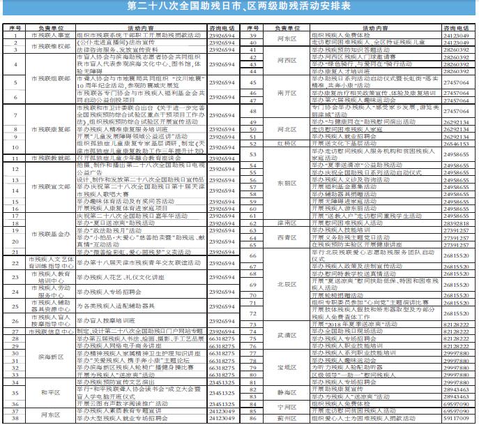 據介紹,目前全市共有57萬殘疾人,殘疾朋友是社會大家庭的重要成員,需要政府和社會各界格外關心。今年全國助殘日活動主題是“全面建成小康社會,殘疾人一個也不能少”,為廣泛深入開展全國助殘日活動,天津市將圍繞主題組織開展近百項助殘活動,并將每一項活動相關信息對外公布,方便殘疾朋友參與其中,受益其中。(記者 韓雯)