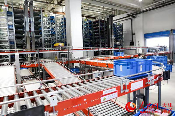 天津首個(gè)全自動(dòng)化跨境電商倉(cāng)在天津自貿(mào)區(qū)東疆片區(qū)投入使用。何沛霖/攝