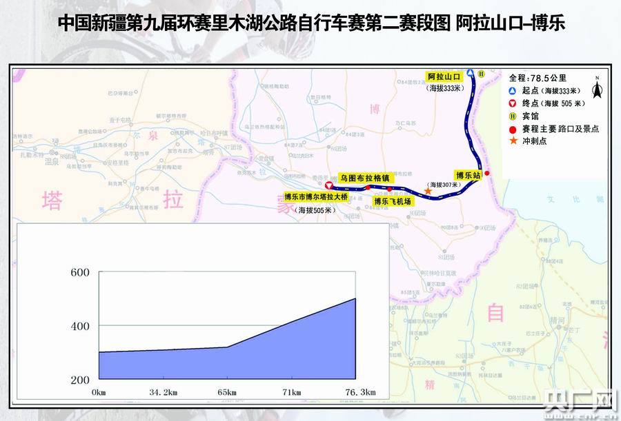 明天將迎來本次比賽第三賽段的爭奪,從博樂市到溫泉縣,總長91公里。這也是比賽的第一個爬坡賽段,海拔從500米爬升到1324米。對于眾多車手來說,真正的挑戰(zhàn)才剛開始,而總成績車手的競爭也會愈加激烈。