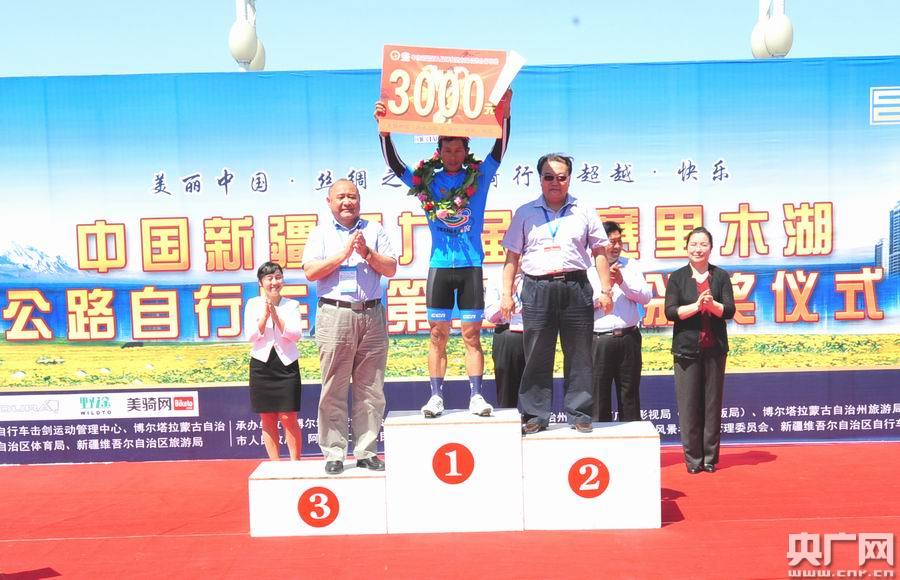 比賽進行到最后12公里,突圍集團獲勝的幾率已經(jīng)很大,此時,突圍車手再次發(fā)生分裂,經(jīng)過了長時間突圍還能發(fā)動進攻的車手已經(jīng)相當不易。來自深圳(伊犁金帝企業(yè))聯(lián)隊的何明鎧和博樂秒登高車隊的馬海軍率先嘗試進攻,幾公里后被突圍集團其他車手抓獲。而終點前,馬海軍憑借自己優(yōu)秀的體能儲備和沖刺能力在最后500米再次進攻,此時其他車手已經(jīng)很難跟住。最終,馬海軍以較大的優(yōu)勢單飛過線,獲得本場比賽的冠軍。