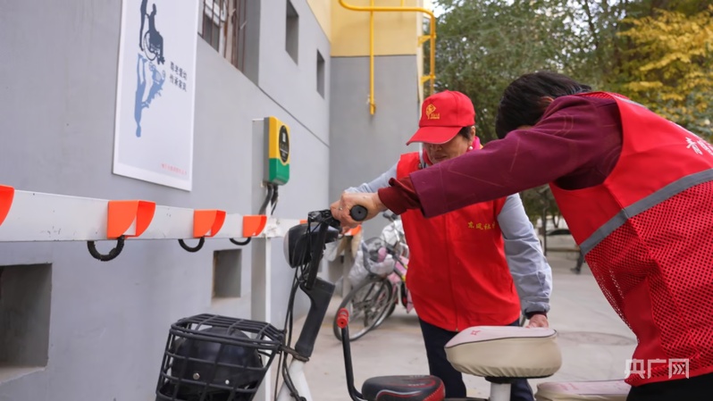 “小巷管家”正在整理電動車停放順序 (央廣網(wǎng)發(fā) 烏蘭巴特 攝)