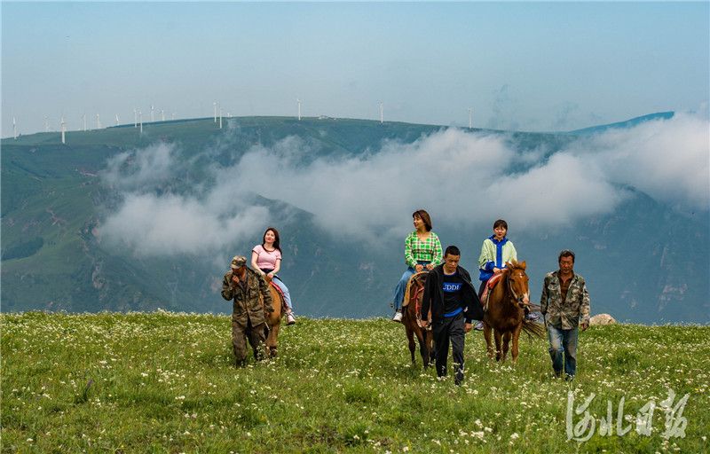 2020年7月10日,淶源縣空中草原景區(qū),十八盤(pán)村村民為游客牽馬。河北日?qǐng)?bào)記者 趙杰 攝