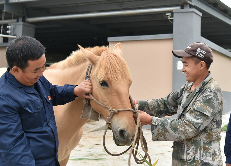 2020年7月10日,駐村第一書(shū)記、扶貧工作隊(duì)隊(duì)長(zhǎng)梁建明(左)和村民一起查看馬匹。河北日?qǐng)?bào)記者 趙海江 攝