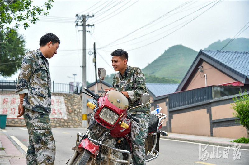 2020年7月10日,村民張志勇(右)騎在摩托車(chē)上跟村民聊天。河北日?qǐng)?bào)記者 趙杰 攝