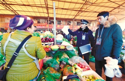 近日,拉薩市鞏固“禁白”成果領導小組辦公室的工作人員在農貿市場巡查“禁白”工作情況。