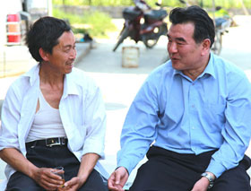 23日中央臺“走轉(zhuǎn)改”傾聽貴州大型采訪活動啟動,圖為記者王求在當(dāng)?shù)卮迕耜愘F忠家了解情況。(中廣網(wǎng)記者 涂傲/攝)