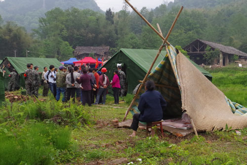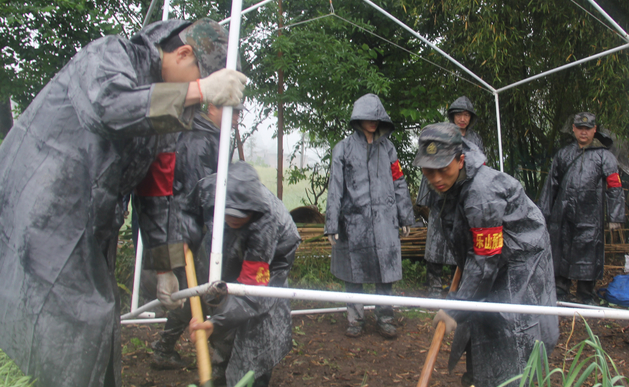 官兵緊急搭建帳篷防下雨