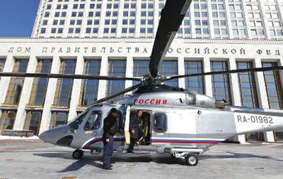 俄總理梅德韋杰夫乘直升機上班