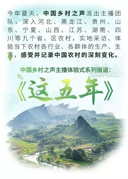 中國(guó)鄉(xiāng)村之聲這五年,見(jiàn)證了十八大以來(lái)中國(guó)農(nóng)村日新月異的這五年。為了感受并記錄中國(guó)農(nóng)村這五年的深刻變化,今年夏天,中國(guó)鄉(xiāng)村之聲派出主持人團(tuán)隊(duì),歷時(shí)兩個(gè)多月,深入河北、山東、寧夏、四川、黑龍江等九個(gè)省、區(qū)的農(nóng)村,實(shí)地采訪、體驗(yàn)當(dāng)下農(nóng)村各行業(yè)、各群體的生產(chǎn)、生活。