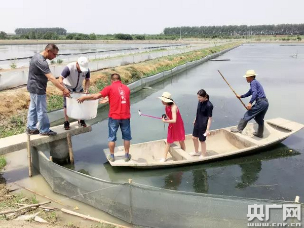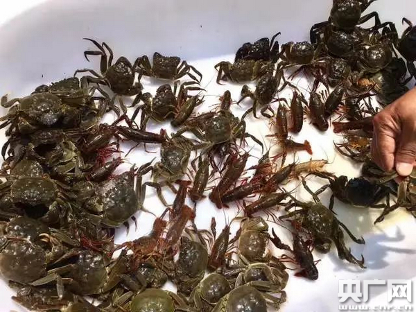 搖著槳,主播坐在一條小漁船上,眼前是一片水塘。這里是“王鮮記”的水產(chǎn)養(yǎng)殖基地。他們銷(xiāo)往全國(guó)各地的水產(chǎn)品,就藏在這一片片水塘里,F(xiàn)在,主播慧思要體驗(yàn)下湖撈螃蟹。不一會(huì)兒,一網(wǎng)活蹦亂跳的螃蟹和小龍蝦就被撈了上來(lái)。