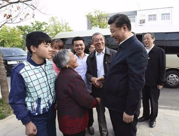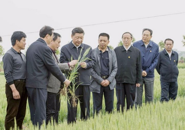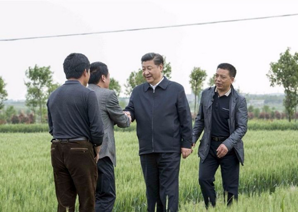 2016年4月25日下午,習(xí)近平來(lái)到小崗村4300畝高標(biāo)準(zhǔn)農(nóng)田示范點(diǎn),沿著田埂走進(jìn)麥田,察看小麥長(zhǎng)勢(shì)