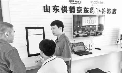 日前,記者來到山東高密市供銷京東線下體驗店,琳瑯滿目的商品映入眼簾,這里有農(nóng)民們生活中必需的柴米油鹽,也有大件的家用電器,如冰箱、洗衣機、微波爐等商品。同時,村民們還可以在供銷社工作人員的指導下,體驗線上線下結(jié)合的一站式購物,享受到家電、家具的配送、安裝等服務(wù)。