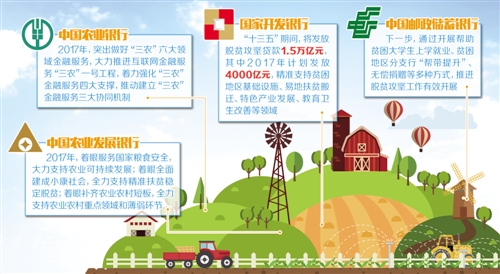 在我國(guó)銀行業(yè)推動(dòng)金融精準(zhǔn)扶貧的過(guò)程中,各大銀行各顯身手。國(guó)開行2016年共發(fā)放精準(zhǔn)扶貧貸款3153億元;“十三五”期間,國(guó)開行將發(fā)放脫貧攻堅(jiān)貸款1.5萬(wàn)億元,其中2017年計(jì)劃發(fā)放4000億元,精準(zhǔn)支持貧困地區(qū)基礎(chǔ)設(shè)施、易地扶貧搬遷、特色產(chǎn)業(yè)發(fā)展、教育衛(wèi)生改善等領(lǐng)域。郵儲(chǔ)銀行則在今年初明確了下一步金融精準(zhǔn)扶貧的六項(xiàng)工作,包括通過(guò)開展幫助貧困大學(xué)生上學(xué)就業(yè)、貧困地區(qū)分支行“幫帶提升”、無(wú)償捐贈(zèng)等多種方式,推進(jìn)脫貧攻堅(jiān)工作有效開展。