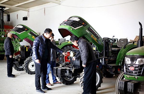 2月23日,農(nóng)民在河北省武邑縣武邑鎮(zhèn)一農(nóng)機(jī)銷(xiāo)售站選購(gòu)農(nóng)機(jī)。