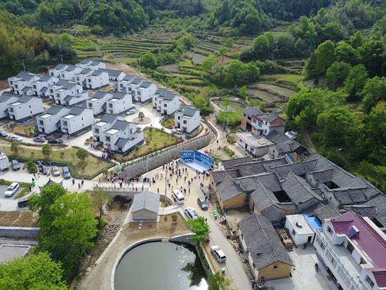 大灣村現(xiàn)在的村貌讓人不敢相信這里是全國(guó)重點(diǎn)貧困縣金寨縣的貧困鄉(xiāng)村。去年4月,習(xí)近平總書(shū)記來(lái)到大灣村走訪村民,并同當(dāng)?shù)馗刹咳罕姽采堂撠毠?jiān)大計(jì)。一年來(lái),大灣村可以說(shuō)是舊貌換新顏,往來(lái)的人們駕駛著汽車(chē)、摩托車(chē)平穩(wěn)行駛在新建的鄉(xiāng)村公路上,這一年大灣村鋪設(shè)了8764米水泥路。貧困村民陸續(xù)搬入了新建的安置二層小樓,與新房毗鄰的老舊危房已經(jīng)陸續(xù)成為憶苦思甜的“文物”。