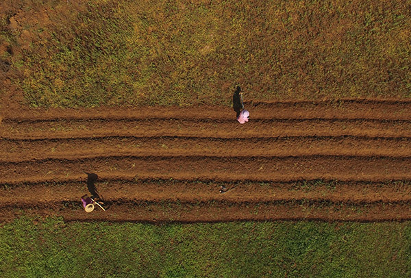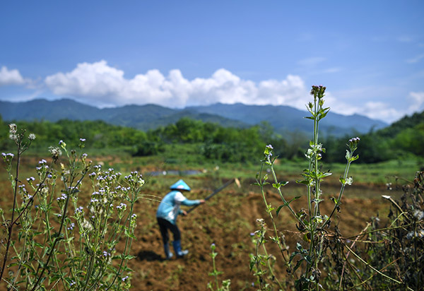 5月7日,在番陽六村憂遁草種植基地,村民在翻整土地,準(zhǔn)備種植憂遁草。