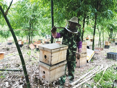現(xiàn)在的細水鄉(xiāng),林下養(yǎng)蜂已不僅局限在橡膠林里,青翠的竹林也被用來養(yǎng)蜂,沈紅輝研發(fā)的野蜂養(yǎng)殖技術(shù)也逐漸成熟,屆時新品種“百花蜜”將會讓農(nóng)戶的腰包更鼓。