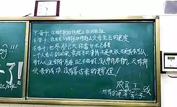 8月25日是河南省實(shí)驗(yàn)中學(xué)開學(xué)第一天,一名農(nóng)民工留在黑板上的寄語(yǔ),經(jīng)朋友圈各種轉(zhuǎn)發(fā),火了。