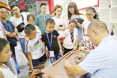 平定縣手工藝人現(xiàn)場(chǎng)表演制砂壺,吸引了一批小朋友圍觀。張美麗攝