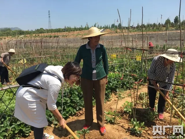 在葉家莊村村頭,幾名婦女戴著草帽,扛著農(nóng)具,正準(zhǔn)備下地干活。朱新榮指著一片“拼圖式”的田塊告訴孟然,那就是葉家莊村2013年發(fā)展起來的“QQ”農(nóng)場。