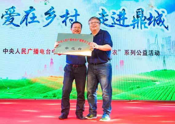 中央人民廣播電臺(tái)社教節(jié)目中心副主任陶煒為常德市鼎城區(qū)授“中國(guó)鄉(xiāng)村之聲愛(ài)在鄉(xiāng)村公益活動(dòng)示范點(diǎn)”牌匾。